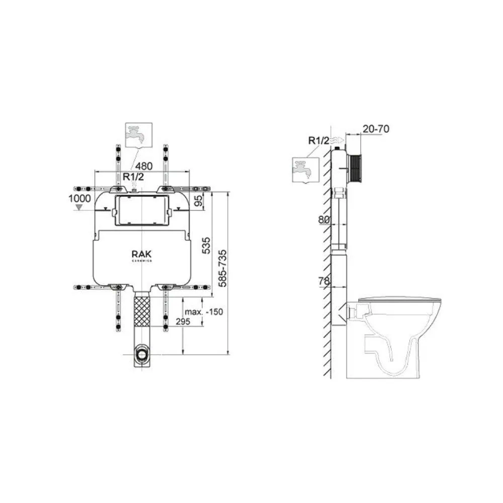 This is a concealed cistern made by RAK Ceramics, part of the Ecofix range. It’s designed for front flush, back-to-wall toilets and is only 8 cm deep – ideal for slimline installations!!