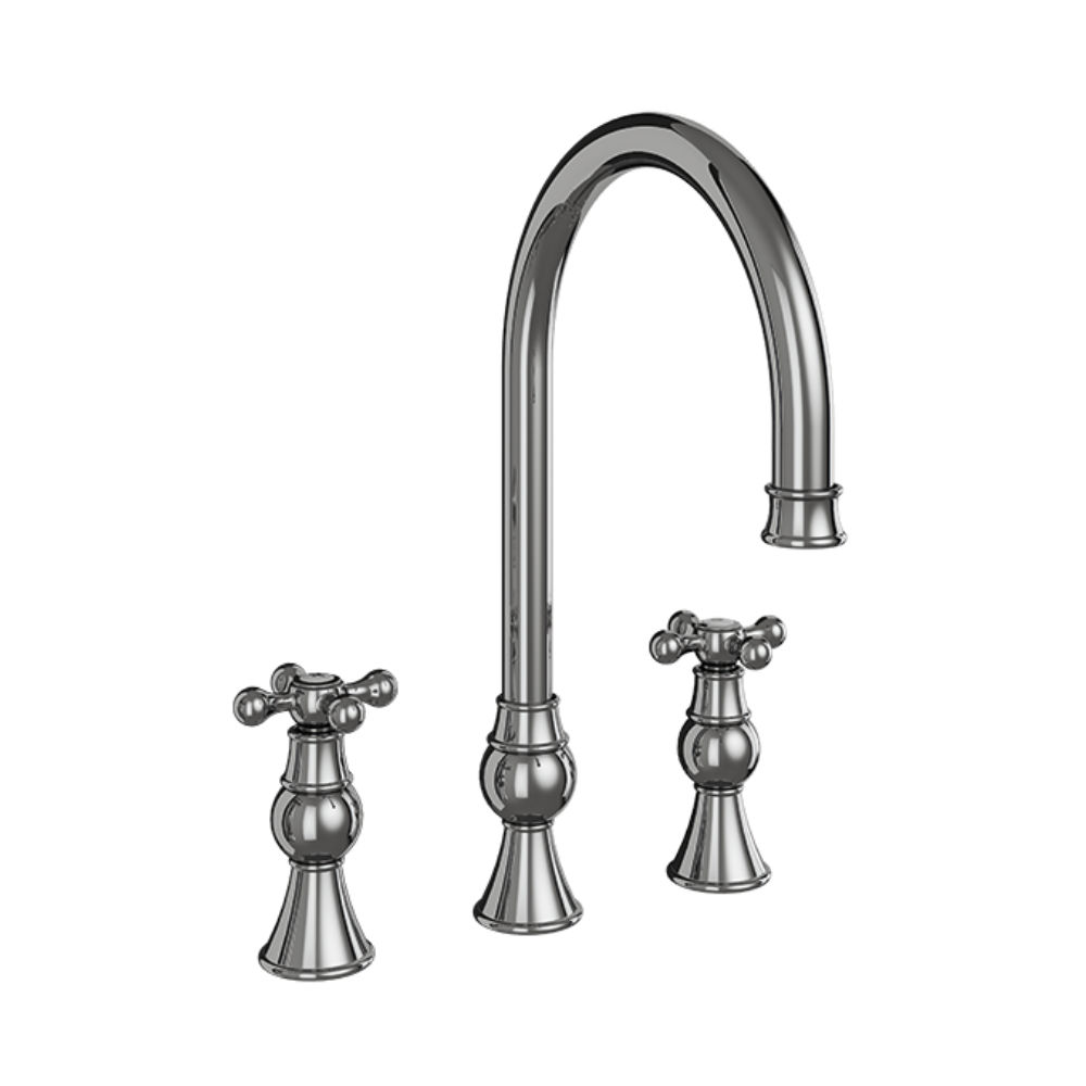 - Twin-cross handles provide independent control of hot and cold water for refined precision.