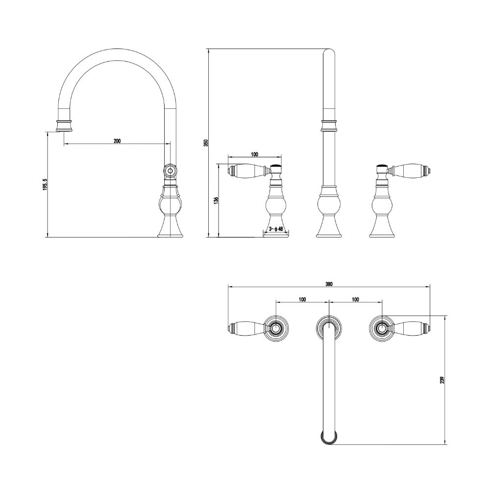 - Twin-lever handles provide independent control of hot and cold water for refined precision.